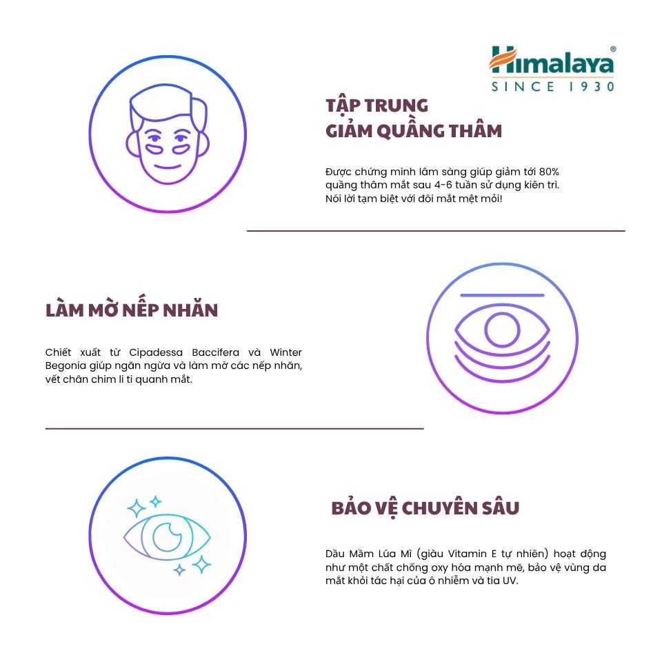 Sử dụng tinh chất trị thâm bọng mắt thường xuyên mang lại nhiều lợi ích vượt trội, cùng với đó là mang lại vẻ ngoài tràn đầy sức sống, giảm dấu hiệu mệt mỏi và căng thẳng. Đó là lí do vì sao Kem dưỡng giảm thâm quầng mắt Himalaya under eye cream Himalaya nằm trong top sản phẩm trị thâm bọng mắt bán chạy của nhà Himalaya Herbals