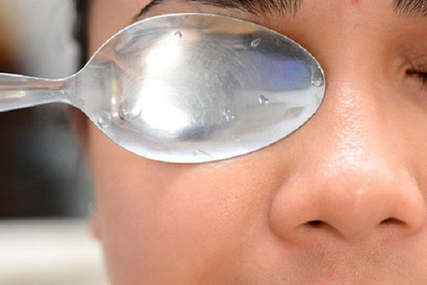 Thứ hai, hãy sử dụng nước lạnh để làm lạnh muỗng, tránh sử dụng nước đá vì dễ gây tổn thương cho vùng da quanh mắt.