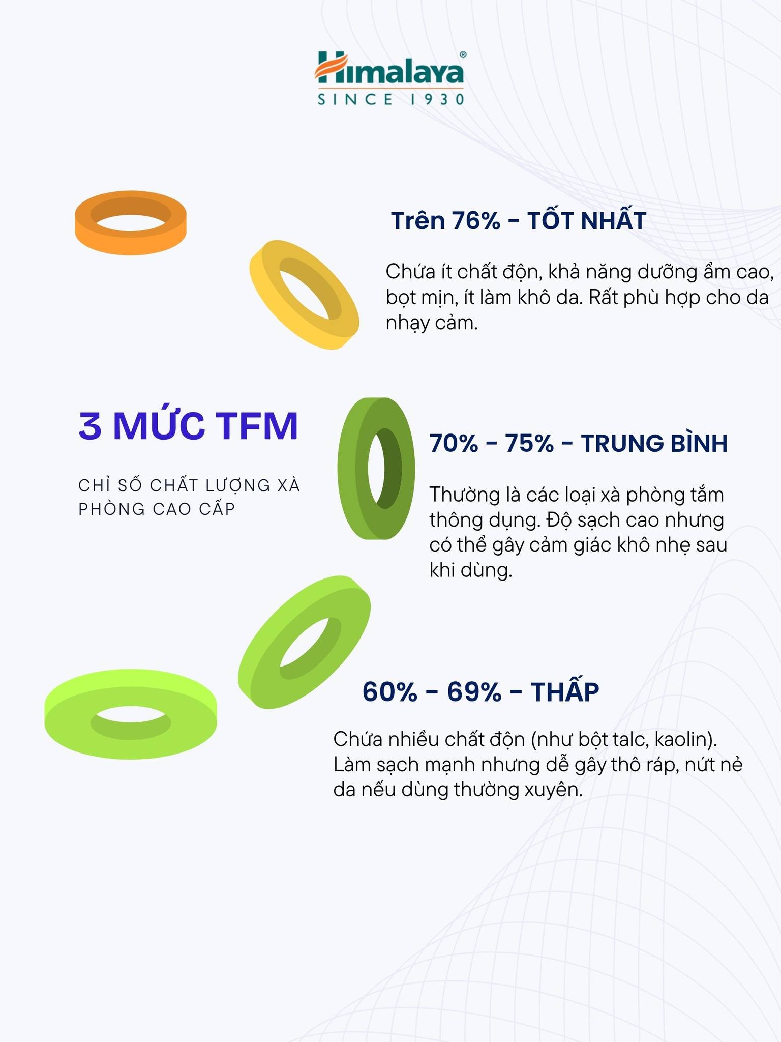 Khác biệt hoàn toàn với các dòng xà phòng thông thường, sản phẩm sở hữu chỉ số TFM lên đến 78% – đạt chuẩn Grade 1 (Loại 1) cao nhất theo tiêu chuẩn quốc tế. Chỉ số TFM (Total Fatty Matter) càng cao chứng tỏ xà phòng càng giàu hàm lượng chất béo dưỡng da từ dầu thảo mộc tự nhiên và ít chất độn hóa học. Điều này giúp sản phẩm không chỉ làm sạch sâu, tiêu diệt vi khuẩn mụn triệt để mà còn giữ lại lớp màng ẩm mượt trên da. Bạn sẽ cảm nhận được làn da sạch thoáng nhưng vẫn mềm mại, không hề có cảm giác khô căng hay "kin kít" khó chịu sau khi tắm, cực kỳ an toàn và dịu nhẹ cho những vùng da đang bị viêm nhiễm hoặc nhạy cảm do mụn.