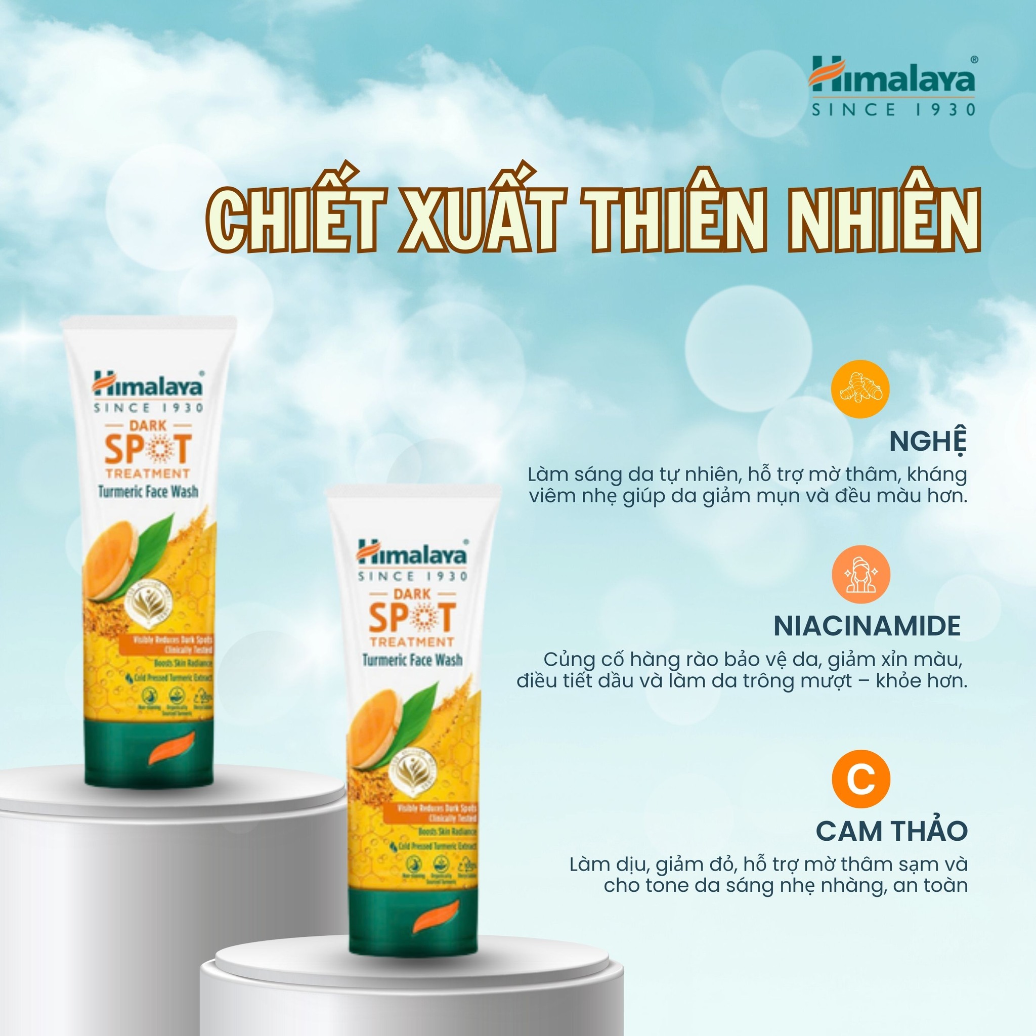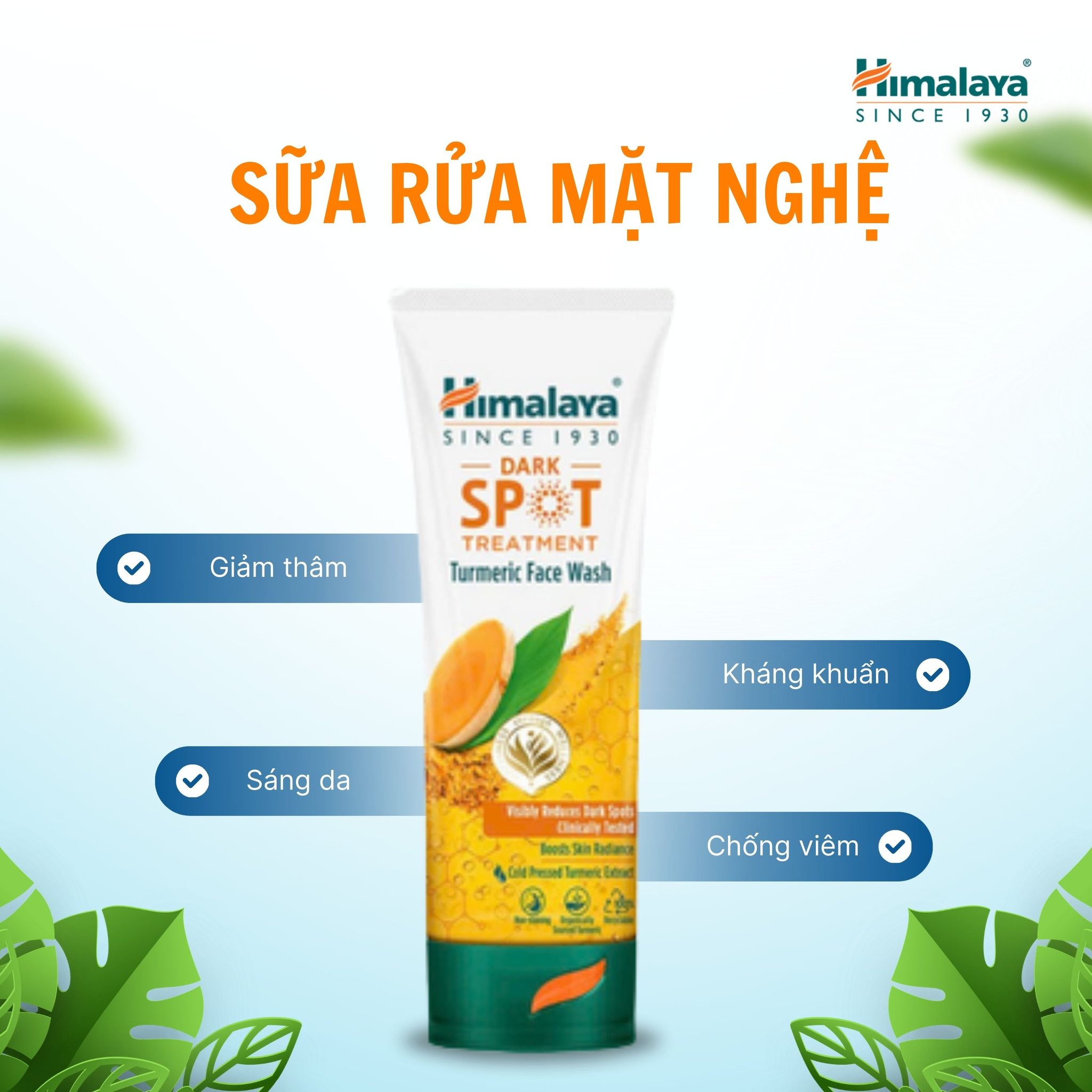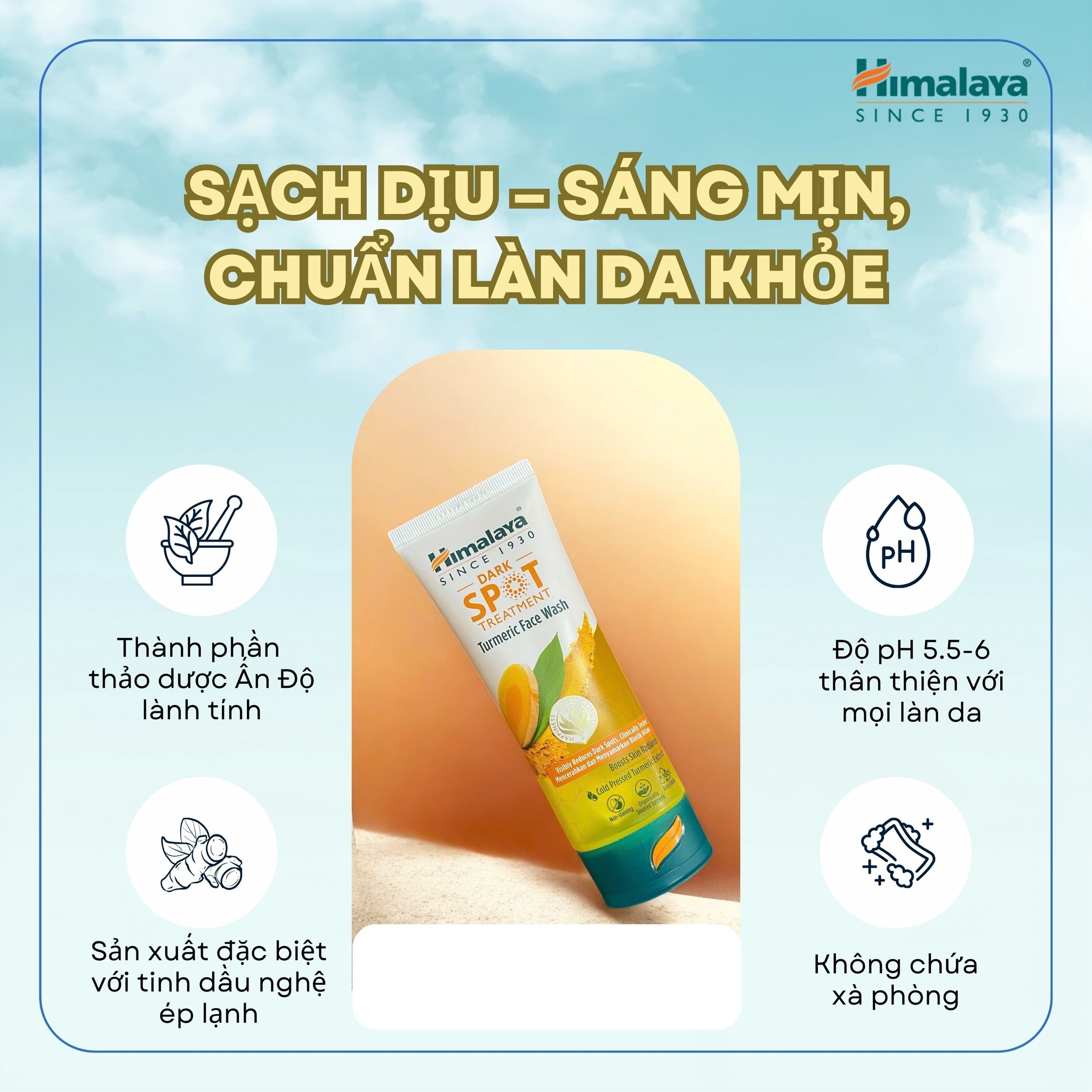 Công nghệ Tinh dầu Nghệ ép lạnh (Cold Pressed Oil): Khác với các loại sữa rửa mặt chiết xuất nghệ thông thường, Himalaya sử dụng công nghệ ép lạnh để giữ lại 100% hoạt chất Curcumin và dưỡng chất quý giá. Điều này giúp tăng hiệu quả mờ thâm gấp nhiều lần mà không làm vàng da hay gây bắt nắng.