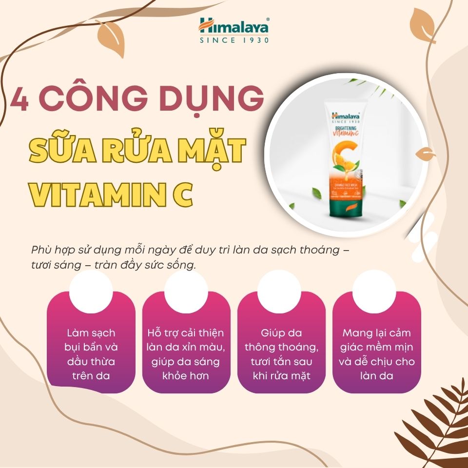 Sức mạnh từ Vỏ Cam thiên nhiên: Khác với các dòng Vitamin C hóa học dễ gây kích ứng, Vitamin C từ vỏ cam trong Himalaya cực kỳ lành tính, giúp da sáng khỏe một cách tự nhiên và bền vững.